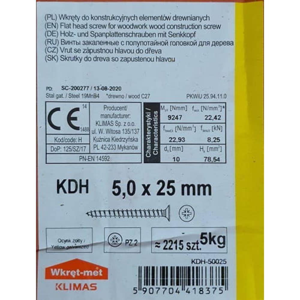 Wkręty hartowane do drewna 5×25 ZŁOTE 5kg KDH
